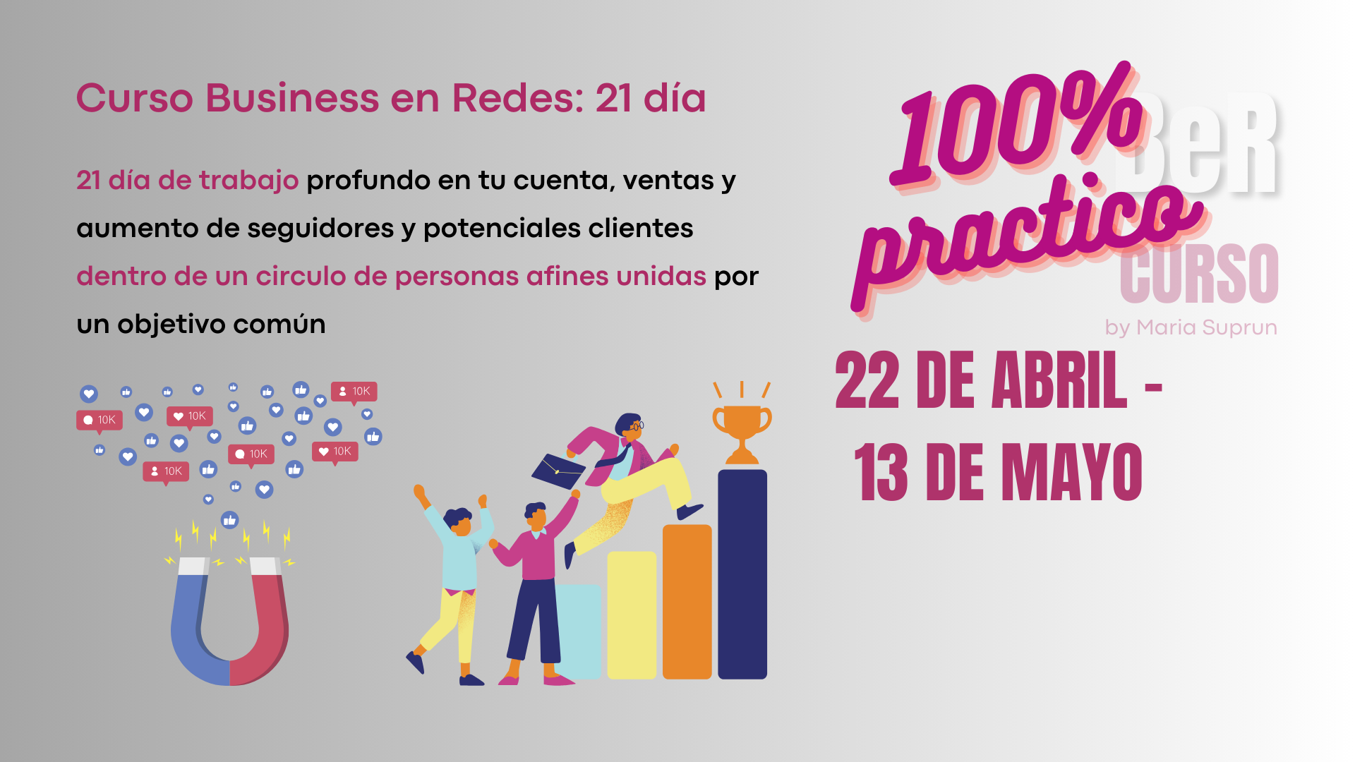 21 día de trabajo profundo en tu cuenta, ventas y aumento de seguidores y potenciales clientes dentro de un circulo de personas afines unidas por un objetivo común